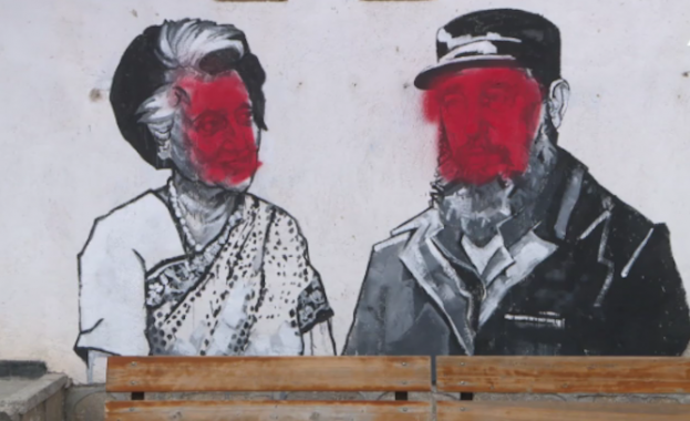/КРОСС/ Полицията ще прегледа записите и ще провери случая, при който вандали замазаха с червена боя лицата на световноизвестните личности, изобразени по дуварите в пловдивското село Старо Железаре. То стана известно в цял свят именно с изображенията на политици, певци и актьори, които позират редом с българските баби и дядовци.