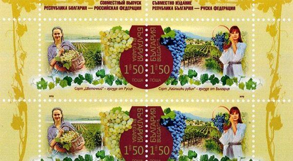 На руската марка е изобразена колекция от български сортове грозде. На събитието присъстваха съветникът на посолството на Русия в България. A.В. Новоселов ; заместник-министъра на транспорта и информационните технологии и съобщенията на България Д. Геновски; директора на Института по лозарството и и винарство Иван Пачев, заместник-кмета на Плевен М. Яков.