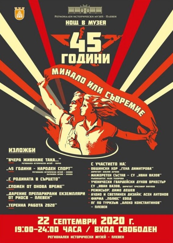 /КРОСС/ С финансовата подкрепа на Община Плевен, Регионален исторически музей - Плевен за поредна година организира Нощ в музея. Тази година е под надслов "45 години минало или съвремие".