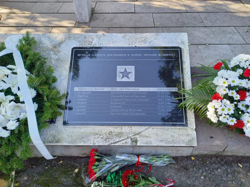 /КРОСС/ Кметът на община Карлово д-р Емил Кабаиванов и посланикът на Русия в България Н. Пр. Елеонора Митрофанова откриха паметна плоча в гр. Баня, която е израз на заслужена почит към саможертвата на седем съветски войници от Трети украински фронт. По време на Втората световна война те са били настанени във военен лазарет именно в град Баня, но губят битката със смъртта.