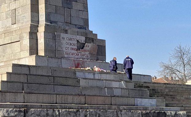 БСП - София възстановява счупената плоча на Паметника на Съветската армия