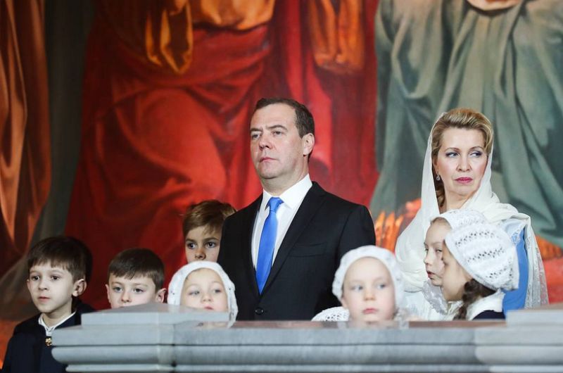 На службата присъства и премиерът Дмитрий Медведев.
