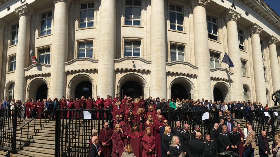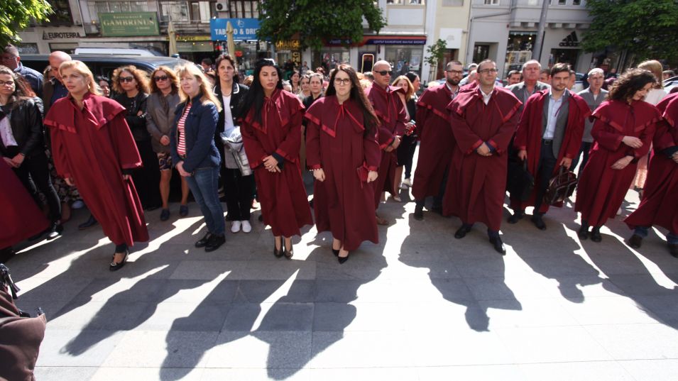 В Бургас пред съдебната палата излязоха прокурори и съдебни служители от Апелативна, Окръжна и Районна прокуратура - Бургас.