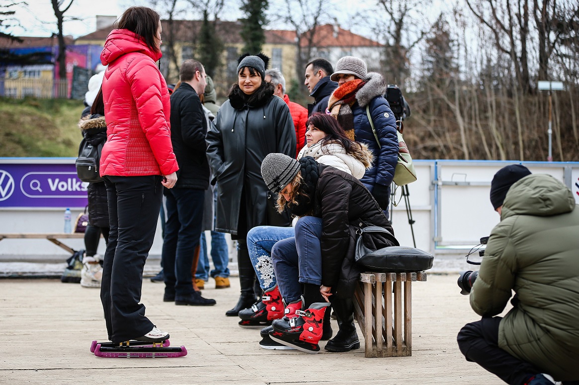 На събитието, но в ролята си на журналист присъства и съотборничката на Жени и също шампионка и медалистка от световни и европейски първенства по шорттрек Анна Стоилкова. Двете си припомниха първите си стъпки на леда именно на тази пързалка и облозите, които са правели като деца.