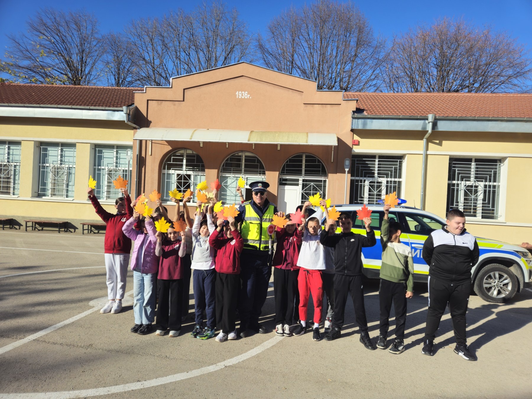 Ученици от 4 „в" клас предадоха „златни" правила за безопасно придвижване от и до училище на своите по-малки съученици от 2 „в" клас в училището. С помощта на полицейските инспектори Милен Минев и Мирослав Милев от РУ- Шумен научиха, че трябва да пресичат само на обозначени места, да се оглеждат внимателно и да не играят близо до пътното платно.