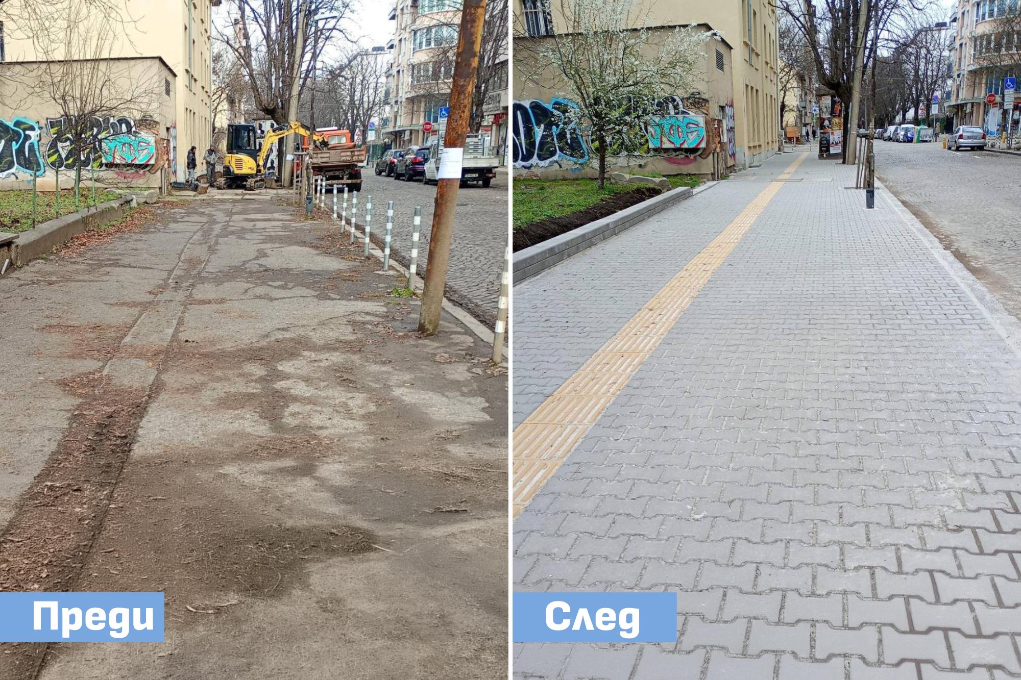 Предстои цялостен ремонт на: югоизточния тротоар на ул. „Владайска" (между ул. „Йоаким Кърчовски" и ул. „Г. Зографина") - район „Красно село", както и ремонт на източния тротоар на ул. „Лазар Михайлов" (между ул. „Руски войн" и ул. „Крушица"), тротоари по ул. „Цар Симеон" (в участъка между бул. „Мария Луиза" и ул. „Веслец" и др.
