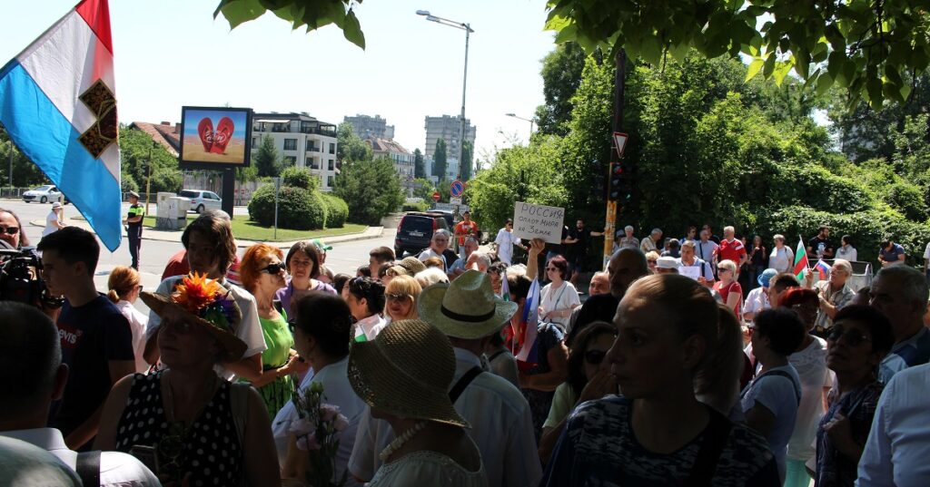 По инициатива на АБВ пред руското посолство в София днес се събра ръководството и активът на партията, както и стотици граждани, за да обявят подкрепата си за изгонените от България представители на дипломатическата мисия на Руската Федерация у нас.