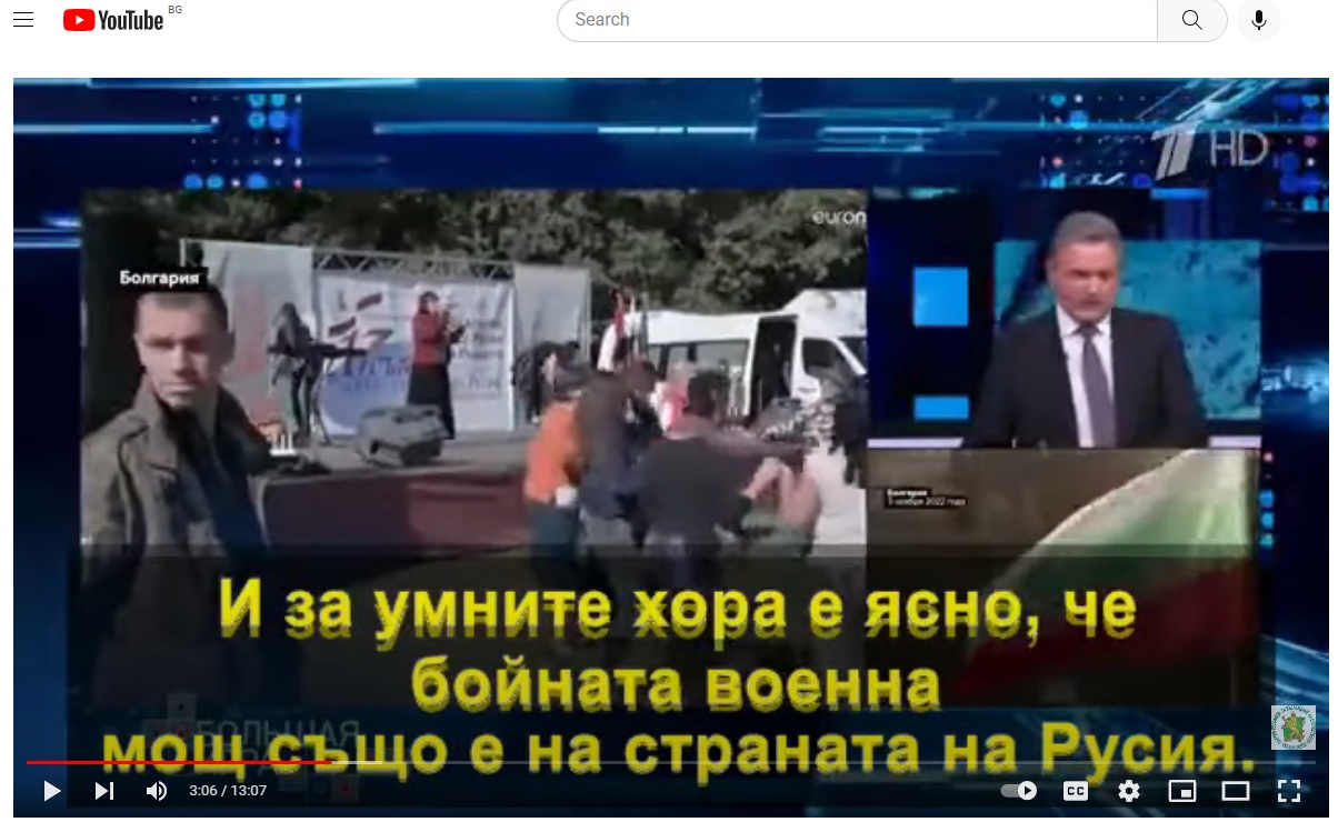 /КРОСС/ Ние русофилите имаме много ясна стратегия. Много ясно е, че истината, честта и достойнството са на наша страна. И за умните хора е ясно, че бойната военна мощ също е на страната на Русия. Ние сме ядрото на бъдеща организация, даже вече определихме първата си инициатива. Една от първите ще бъде инициатива за събирането на 1 милион подписа в Европа за снемане на санкциите срещу Русия, за да се проведе референдум. И втората инициатива е да се проведе такава игра, ако щете, шоу - Русофоб на годината. Това каза в "Большая игра" по 1-ви канал на Руската ТВ Николай Малинов, председател на НД " Русофили" и председател на ППРВО в Република България.