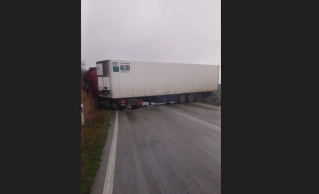 /КРОСС/ Временно е затворен за движение пътят Велико Търново - Русе, в района на разклона за село Масларево, заради самокатастрофирал ТИР.