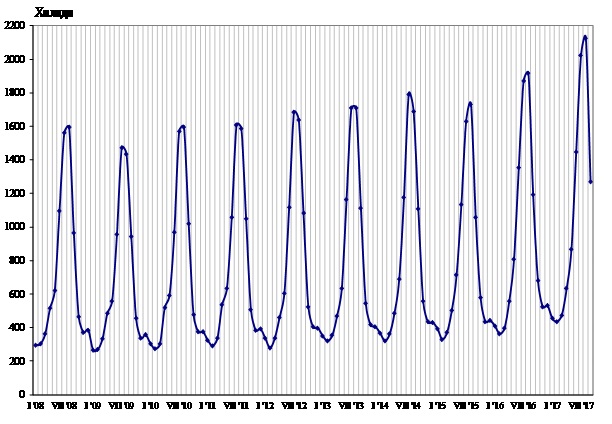 Фиг. 1. Пътувания на български граждани в чужбина по месеци