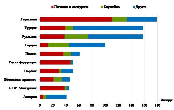 Фиг. 6. Най-много посещения в България по страни и цел през септември 2017 година