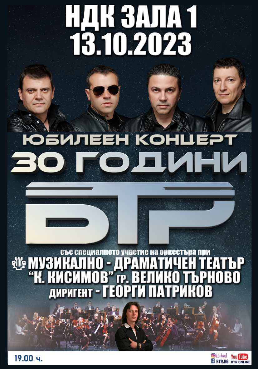 На концерта за първи път, за почитателите на Б.Т.Р. ще прозвучат песните от 30-годишната история на групата в нови аранжименти, адаптирани за рок група и симфоничен оркестър. Билети за концерта в мрежата на Ивентим и на касите на НДК.