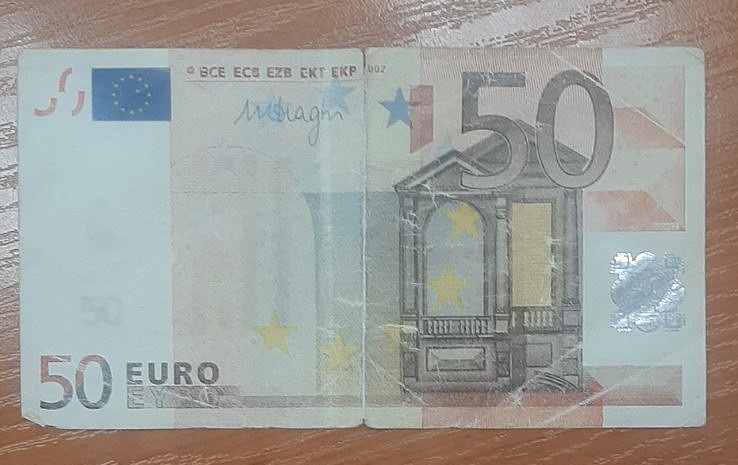 /КРОСС/ Криминалисти от РУ- Шумен установиха мъж, прокарал в обръщение неистинска евро банкнота. Работата по случая започнала на 5 януари след получен сигнал от собственик на търговски обект в града. По негови данни малко преди 16 часа на 2 януари неизвестен посетил хранителен магазин, купил си безалкохолно и си платил сметката с банкнота от 50 евро. Малко по-късно при отчитане на оборота собственикът на търговския обект се усъмнил, че банкнотата е фалшива.