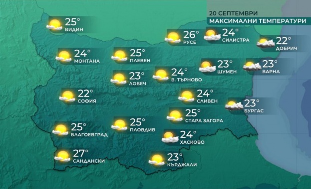 /КРОСС/ Предимно слънчево ще се задържи у нас и днес. Ще духа слаб, в Източна България - умерен североизточен вятър. Максималните температури ще бъдат между 22° и 27°.