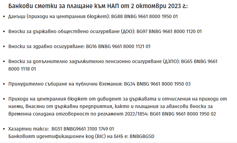 НАП публикува новите банкови сметки за плащане на данъци и осигурителни вноски