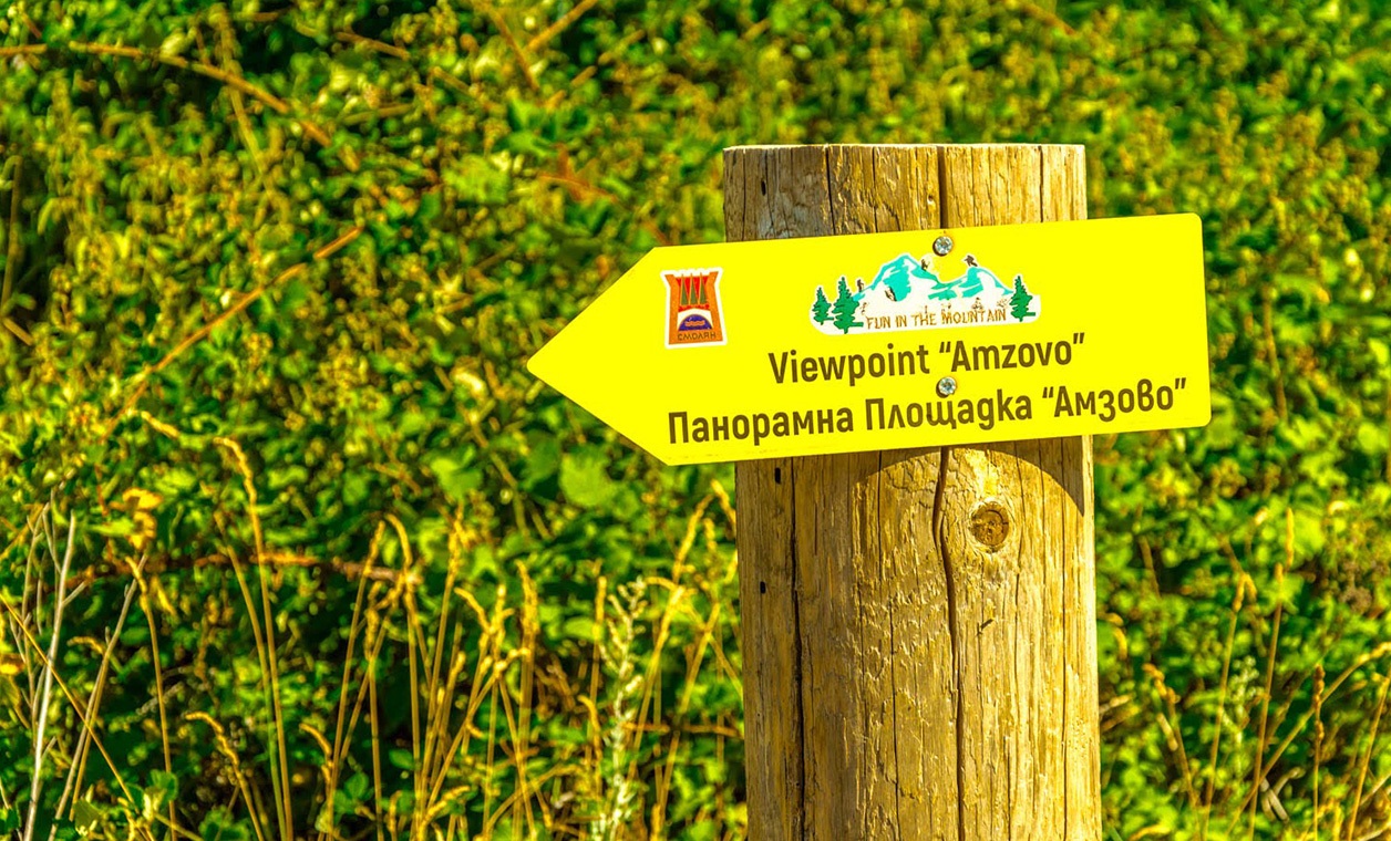 Последната висока точка с гледка в този списък е панорамна площадка „Амзово". С кола по асфалтов път се стига почти до самата площадка, като само последните 5 минути се изминават пеша по черен горски път. Има кафяви указателни табели още от Смолян, така че е трудно човек да се загуби. Дървената тераса, от която Смолян се вижда като на длан, е снабдена и със снимка, която да послужи като ориентир какво виждаме пред себе си.