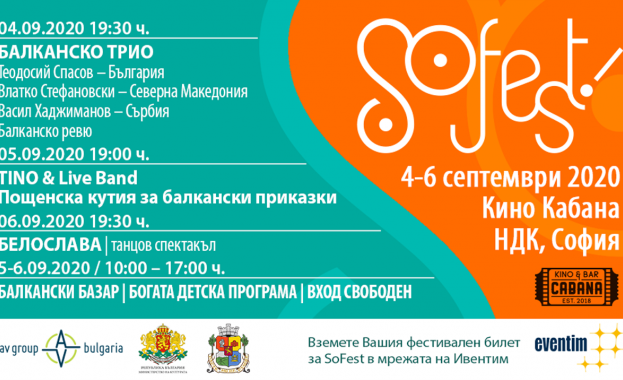 Билети за вечерните събития може да намерите в мрежата на Ивентим с актуални промоционални предложения и опция за фестивален билет. Всички детски събития и SoFest базар ще са с вход свободен!