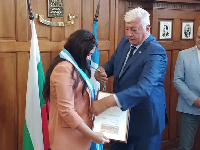 Кметът на Пловдив Здравко Димитров и председателят на Общински съвет-Пловдив Александър Държиков пожелаха още успехи и лично щастие на Йончева.