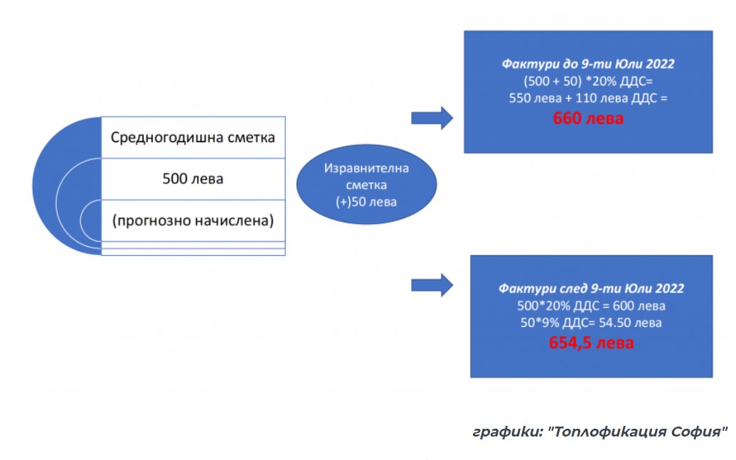 За незаплатените фактури за прогнозно начислена енергия издадени преди 9 юли 2022 г. ще продължи да се прилага ставка от 20 % ДДС.