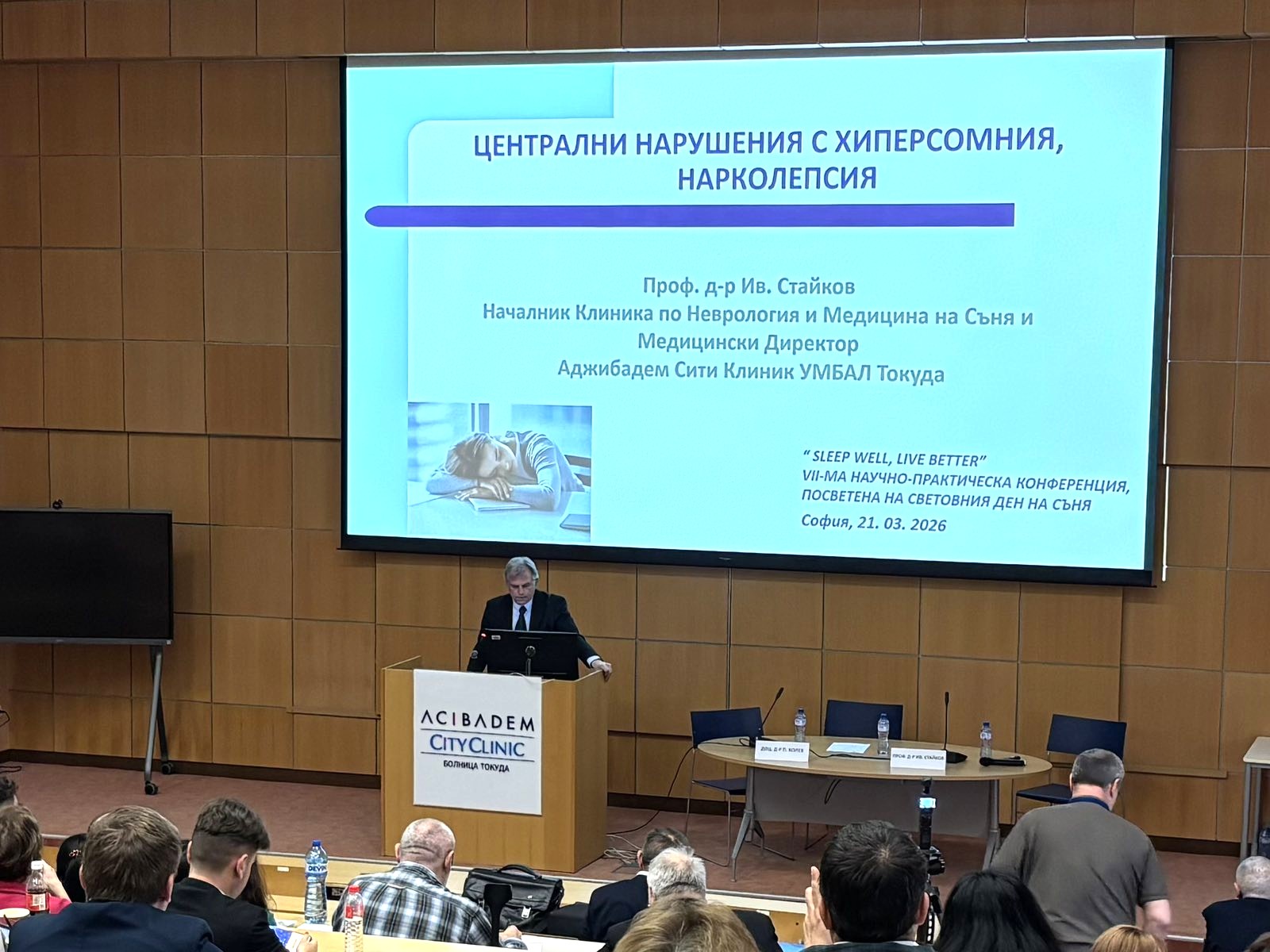 Конференцията откри проф. д-р И. Стайков с резюме на основните причини, поради които сънят се нарежда сред водещите здравни фактори - „Сънят заема 1/4 до 1/3 от нашия живот или около 20-25 години, като нарушенията на съня и бодърстването са едни от най-честите проблеми в ежедневието. Засегнати са около 20-30% от населението. Медицината на съня е нов клон от медицинската наука, който получава своето бързо развитие през последните няколко десетилетия. Според международната класификация на сънните разстройства нарушенията на съня могат да бъдат разделени в 7 основни групи и наброяват над 50 вида."
