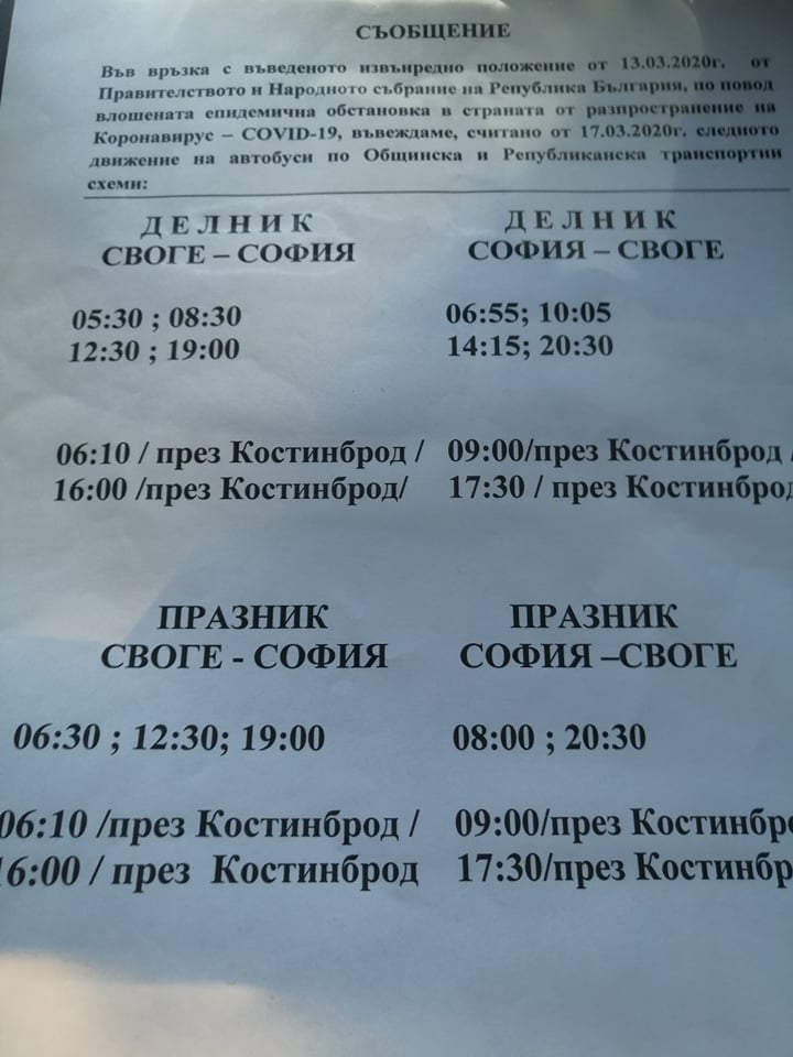 /КРОСС/ Автобусните линии от една от близките до София общини - Своге, до столицатa са редуцирани. Това сигнализират засегнати граждани в групa във Фейсбук.