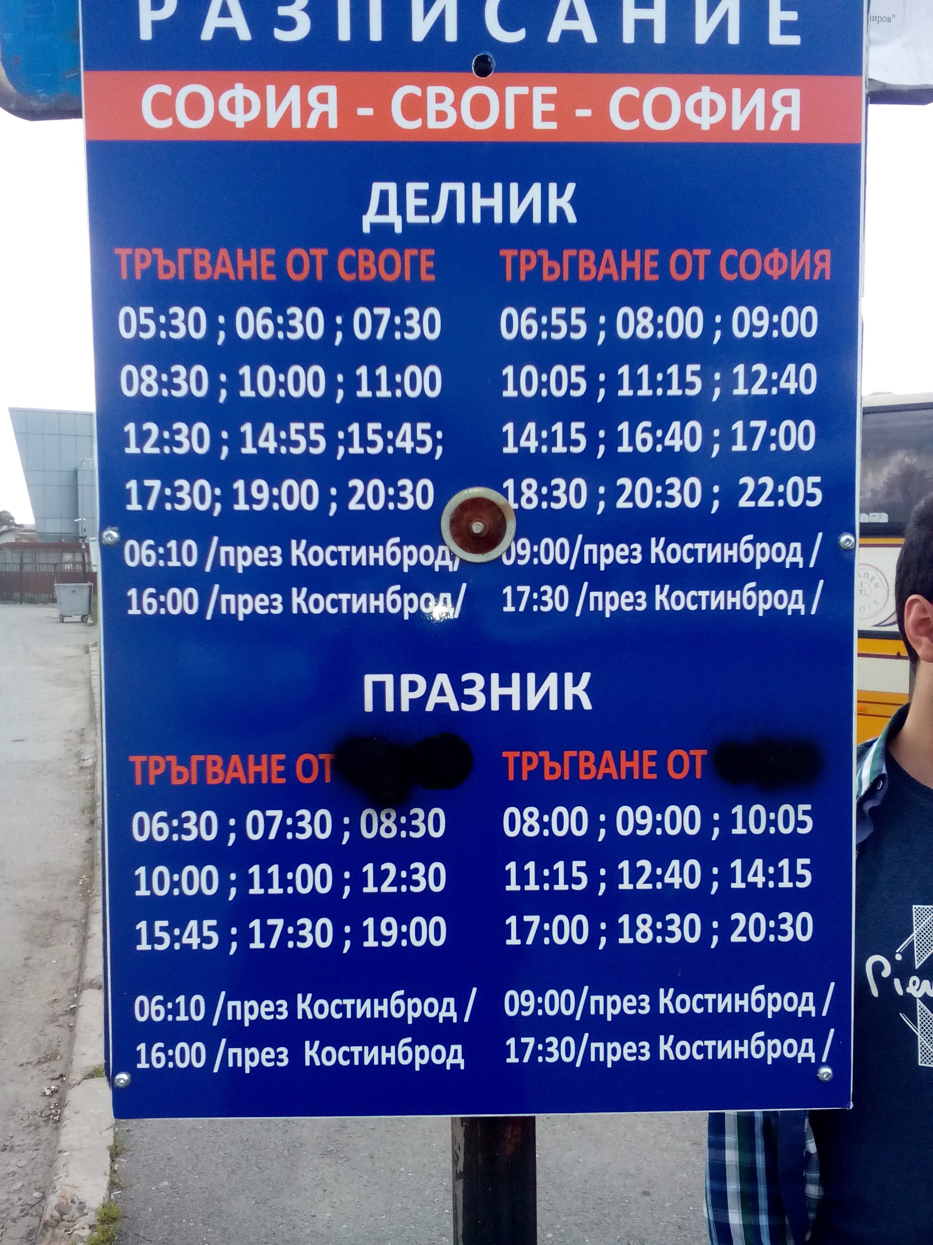 Досега действащото разписание на фирма "Марио 95", оторизирана с договор за обществена поръчка да обслужва линията Своге - София: