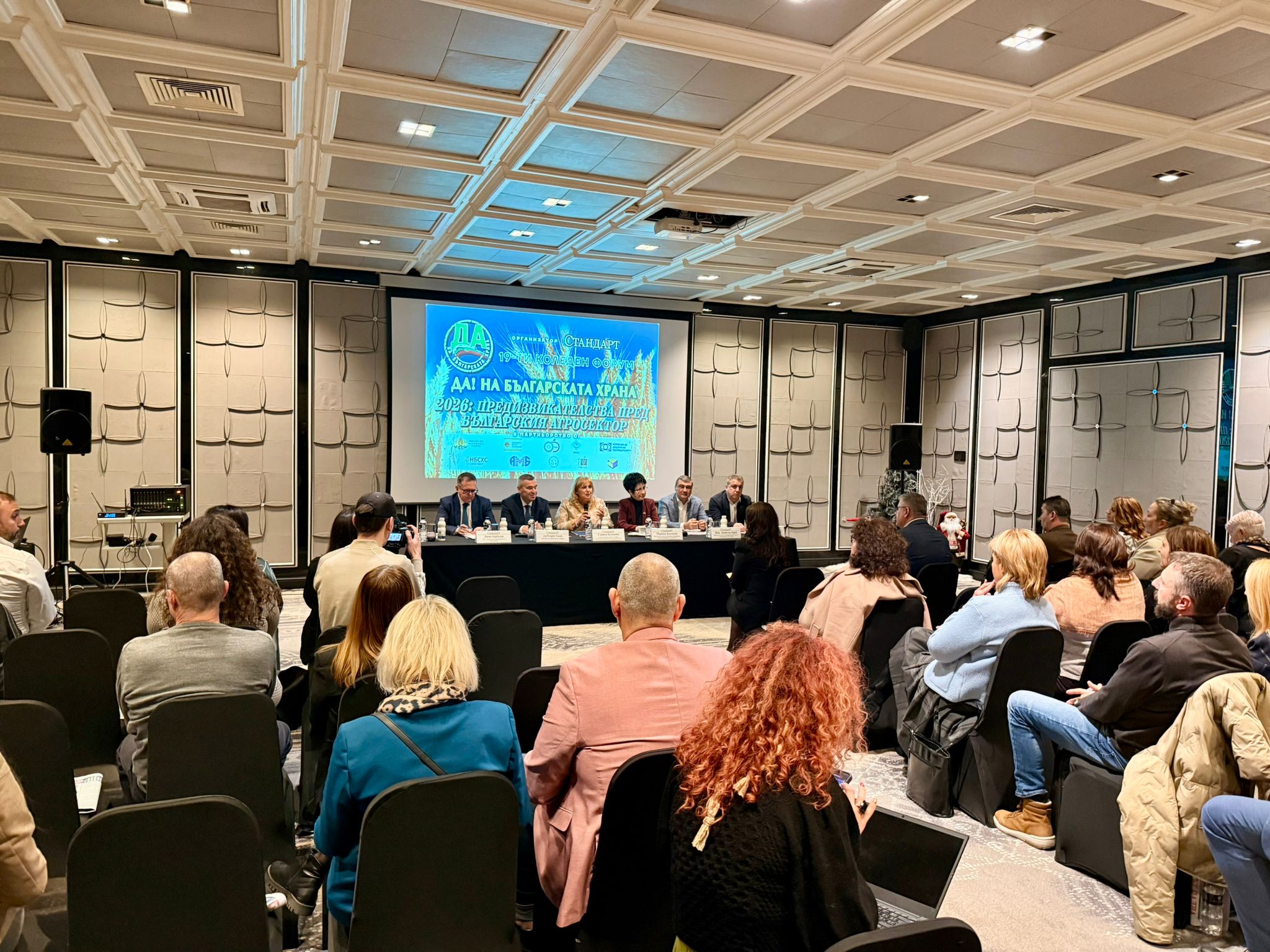 /КРОСС/ Министърът на земеделието и храните д-р Георги Тахов откри 19-ото издание на Коледния форум от кампанията „Да! На българската храна", организирана от вестник "Стандарт". Той посочи, че инициативата е утвърдена като една от най-авторитетните платформи за диалог между държавата, бизнеса и земеделските производители и мултиплицира една основна цел, а именно изграждане на устойчиво, конкурентноспособно и модерно българско земеделие. Тази година форумът се провежда под мотото „Бюджет 2026! Нови възможности и предизвикателства пред българския агросектор". По думите на министър Тахов 2026 г. ще бъде ключова за сектора, тъй като предстои прилагането на първия бюджет в условията на присъединяване на България към еврозоната. Той акцентира върху активната работа на Министерството на земеделието и храните за осигуряване на целенасочено финансиране за модернизация и дигитализация на стопанствата. „Работим за по-справедливи и достъпни директни плащания, по-висока ефективност на публичните инвестиции и за намаляване на административната тежест за всички земеделски производители и преработватели", посочи д-р Тахов.