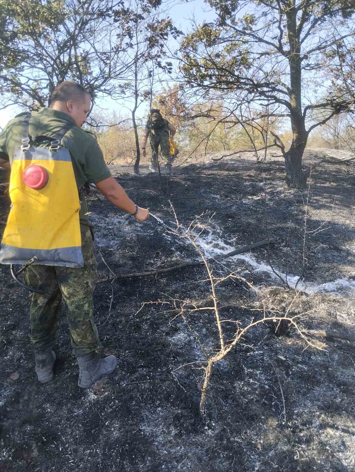 23 военнослужещи с техника от 13-то бригадно командване в Сливен, под ръководството на майор Николай Ончев, гасят горски пожар в трудно достъпен район в местността „Страшко поле" в района на село Мокрен, област Сливен.