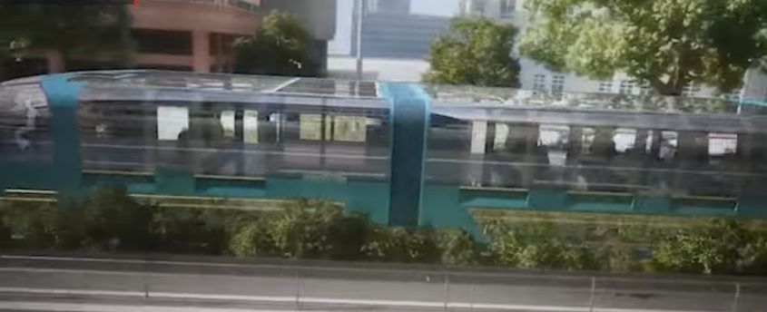 Автобус от бъдещето минава над трафика