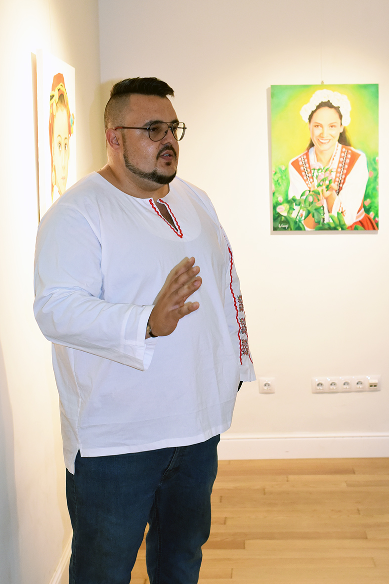 Акцентът в изложбата са потретите на български момичета в народни носии. „Вдъхновението за тези портрети дойде от фотографии на Асен Великов, а цялата експозиция повдига темата за новия Ренесанс, който България има нужда да изживее.“ – сподели авторът.