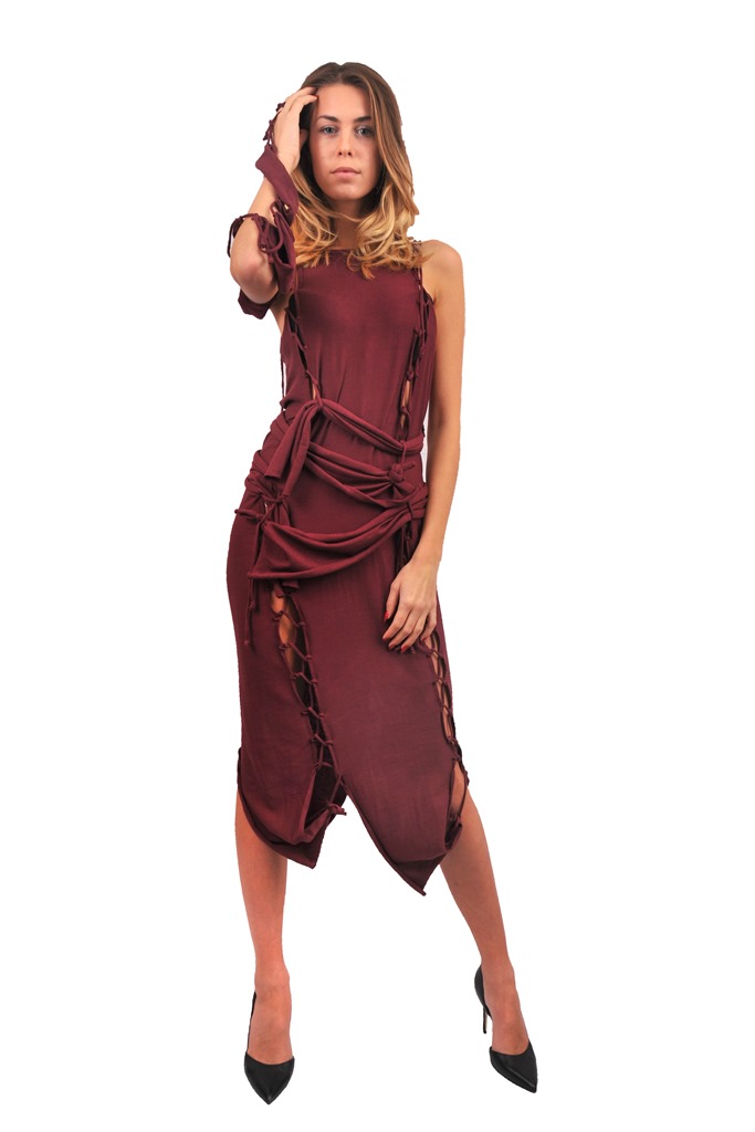 Облеклата са изцяло безшевни – изработени от правоъгълни детайли, свързани със шнурове. Правоъгълните форми подчертават женствените извивки на тялото и са фино изплетени от прежда – микс от дървесна вискоза и вълна. Цветовете на облеклата са наситени охра, ръжда, бордо, скалисто сиво, до ламирано черно и бронз.