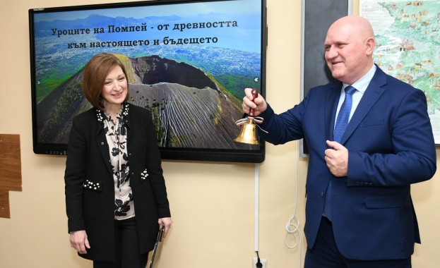 По време на урок за Помпей учениците изследваха вулканични процеси по повод изригването на Везувий, обясняваха защо земетръсните райони са обикновено много гъсто населени и актуални в наши дни природни процеси. Урокът на дванадесетокласниците бе воден от учителите по география и история Надежда Алексиева и Мариана Бошнакова. Тази вечер 30 ученици от гимназията пътуват за Неапол, където на терен ще могат да научат още за вулканите и тевтонските плочи.