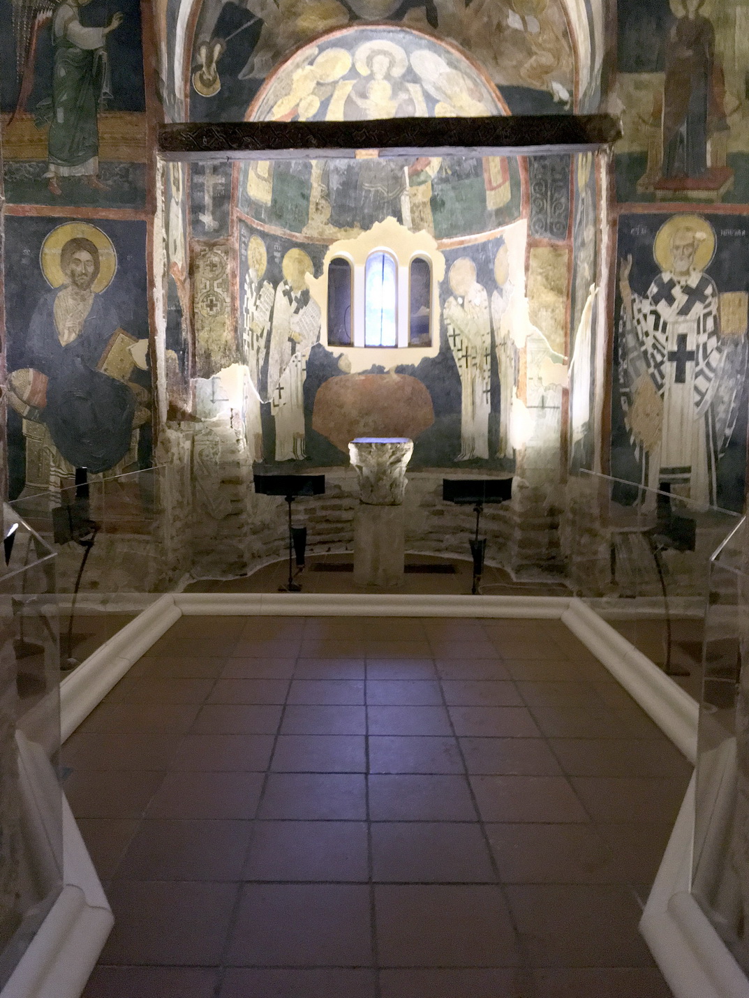 В средновековната част на храм-паметника, който догодина ще отбележи четири десетилетия от включването си в Списъка на световното културно и природно наследство на ЮНЕСКО, бяха изградени специални прозрачни ограничителни стени, които ще предпазват изящните фрески.