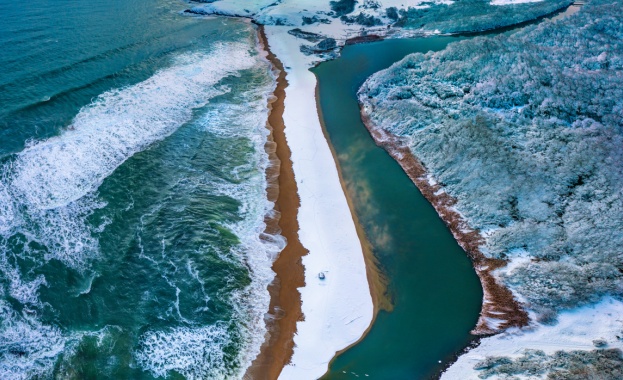 /КРОСС/ Впечатляващи зимни гледки обгръщат устието на река Велека в Синеморец - място, което винаги впечатлява с природната си красота, но сега се е преобразило в истинска зимна приказка.