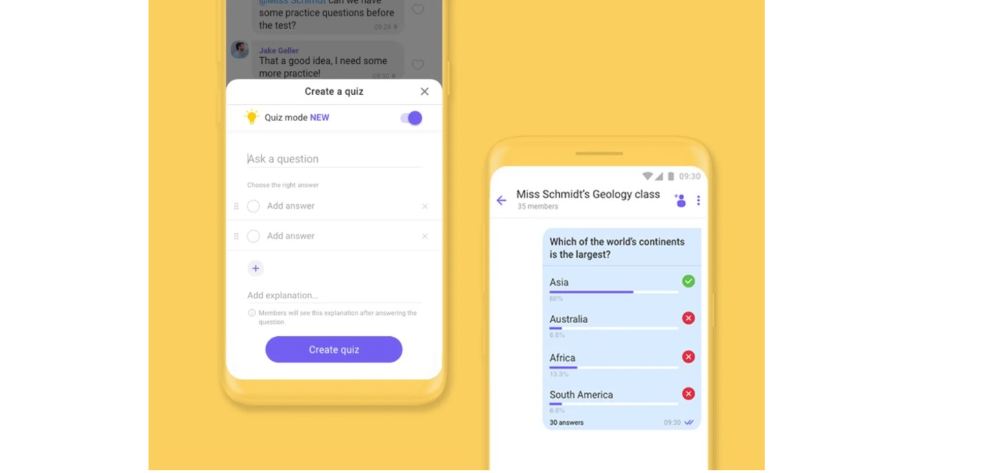/КРОСС/ Rakuten Viber, водещото приложение за комуникация в света, представя различни подобрения, които ще подкрепят учители, родители и ученици през новата учебна година. Едно от тях е „режим на куиз" в „анкети", достъпно както за групови чатове, така и за общности. С него се дава възможност на учителите лесно да проверяват нивото на разбиране на учениците за учебното съдържание по всеки предмет. Също така новата функционалност може да намери и много други приложения не само в учебни процес.