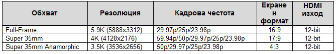 ・През HDMI могат да се извеждат [5.9K] / [4K] / [Anamorphic (4:3) 3.5K] 12-bit RAW видео данни.