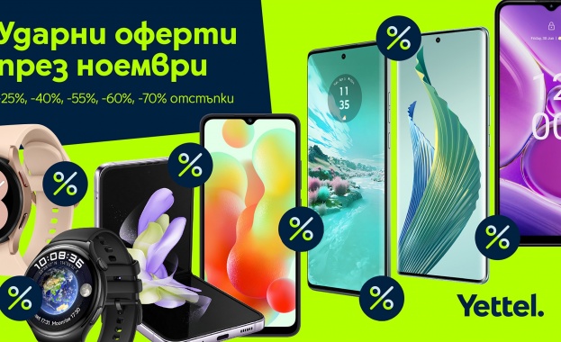 През ноември Yettel предлага и ексклузивни оферти в своя онлайн магазин. Сред моделите, които могат да бъдат открити само на yettel.bg, са XIAOMI Redmi Note 11 Pro 5G 128GB, NOTHING Phone (1) 5G 256GB и MOTOROLA Edge 30 Ultra 5G 256GB с отстъпки, стигащи до 50% от редовната им цена.