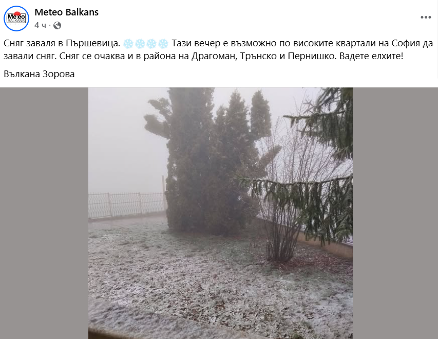 От специализирания сайт „Метео Балканс" предупреждават, че е възможно по високите квартали на София да завали сняг.