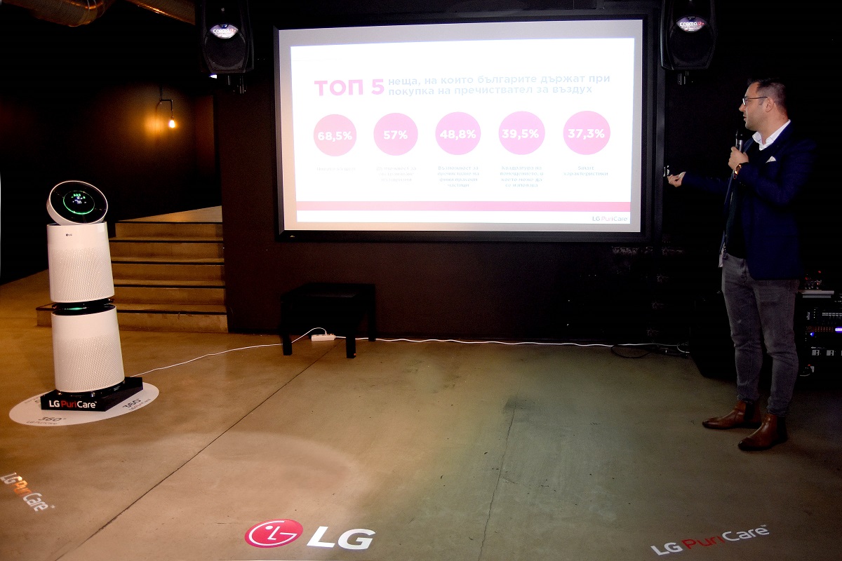 За да отговори на нуждите на потребителите и да им осигури максимален комфорт, от февруари на българския пазар ще се предлага новият мощен пречиствател LG PuriCare, подходящ както за дома, така и за офиса, с капацитет за пречистване на пространства от 90 квадратни метра. Безшумното устройството пречиства въздуха на две нива, като се грижи и за най-малките - пълзящите бебета и домашните любимци. Абсорбирайки замърсители и миризми на 360º, пречиствателят доставя чист въздух до всяко кътче в помещението независимо къде е поставен. Може би най-голямото предимство на уреда е възможността да премахва над 99% от фините прахове частици, което го прави единственият уред на пазара, който абсорбира от частици от 10 микрона до екстра фини частици до 1 микрон.