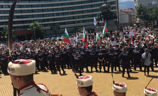 Все още движението по бул. "Цар Освободител" не е блокирано. Полиция охранява протеста.