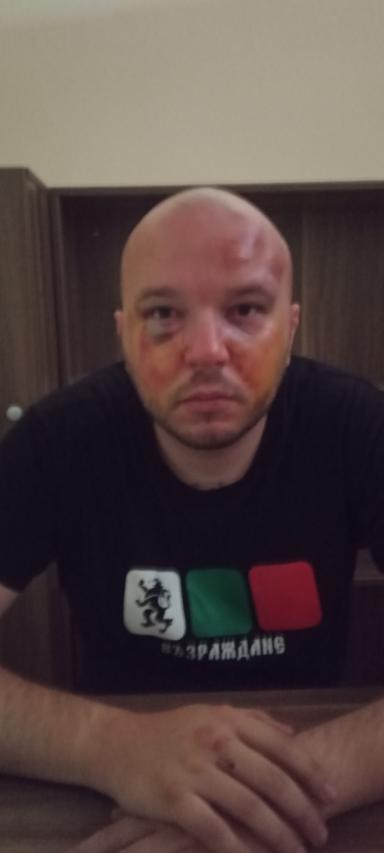Ритан е в главата, блъскан е с каски и щитове от група полицаи. Не само са нарушени гражданските му права, но и към момента полицията отказва да бъде медицински освидетелстван.
