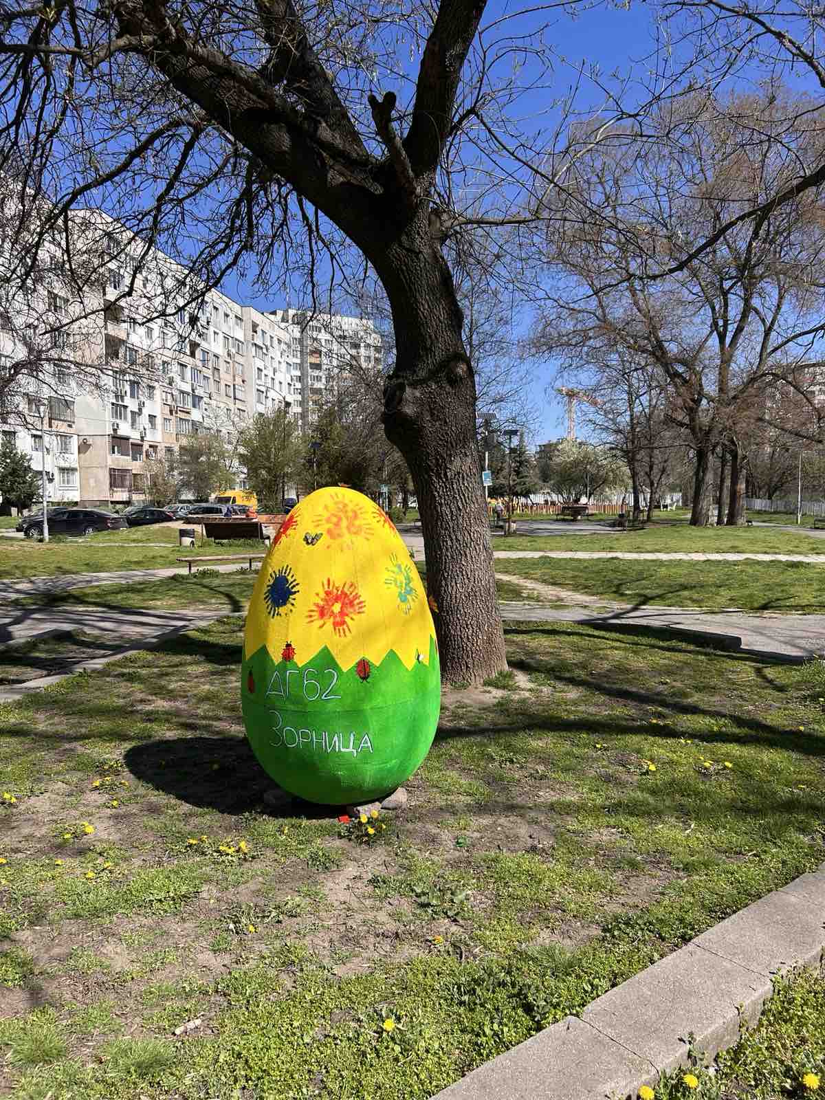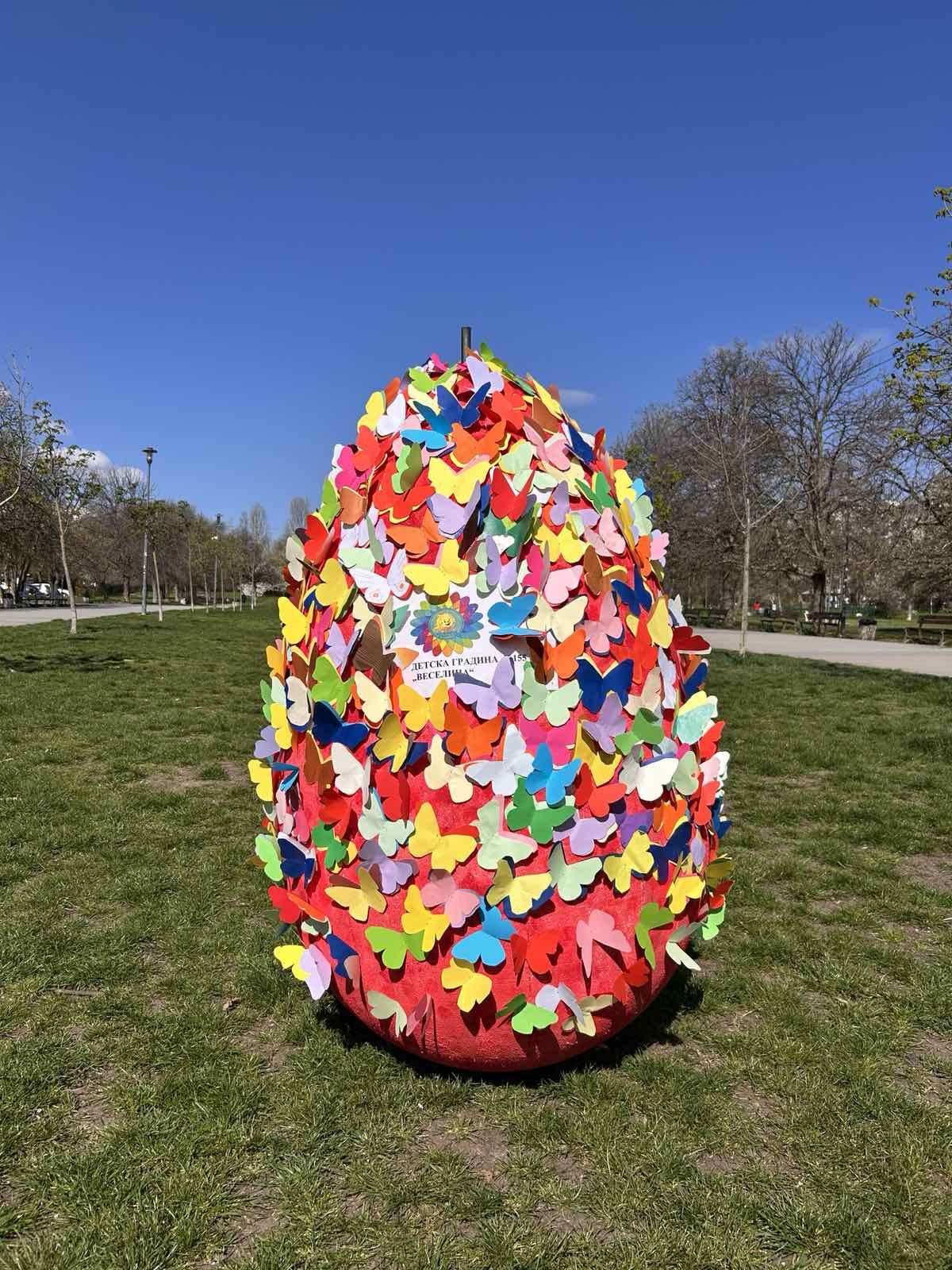 Прекрасните пъстри яйца, дело на децата от ДГ 61 „Шарено петле", ДГ 62 „Зорница", ДГ 65 „Слънчево детство" и ДГ 154 „Сбъдната мечта" са разположени в парк „Слатинска река".