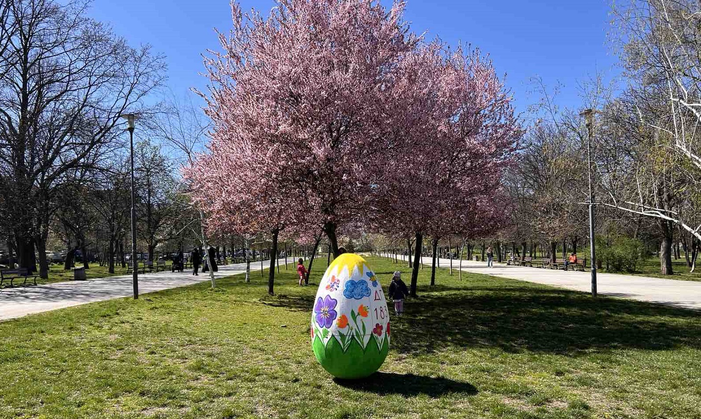 Декоративните яйца вече красят парковете „Гео Милев" и „Слатинска река". От тях греят свежи цветове за радост на малки и големи.