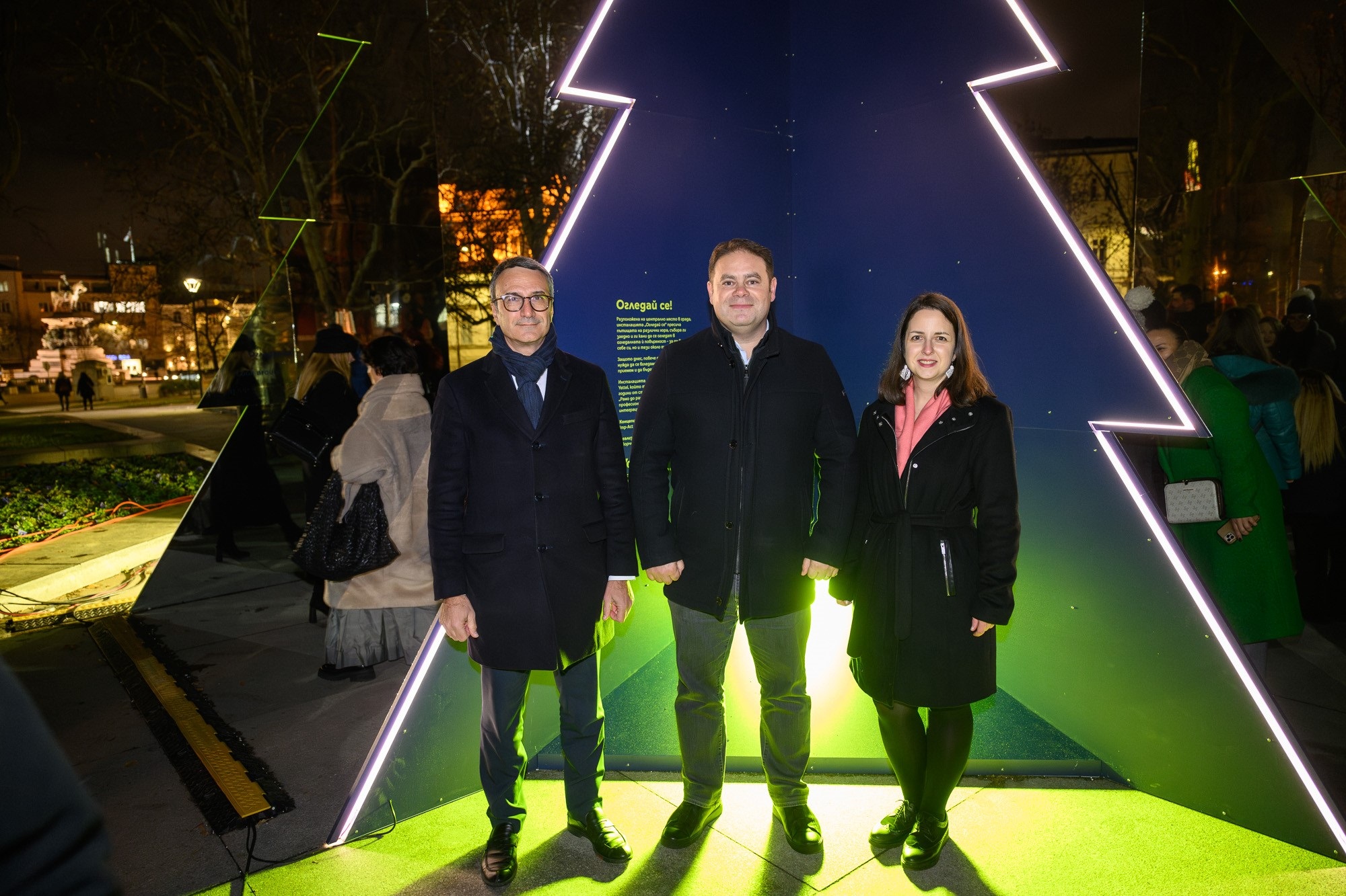 На специално събитие, в навечерието на Международния ден на хората с увреждания, Трайчо Трайков, кмет на район „Средец" в Столична община и Джейсън Кинг, главен изпълнителен директор на Yettel България, запалиха светлините на огледалната инсталация.