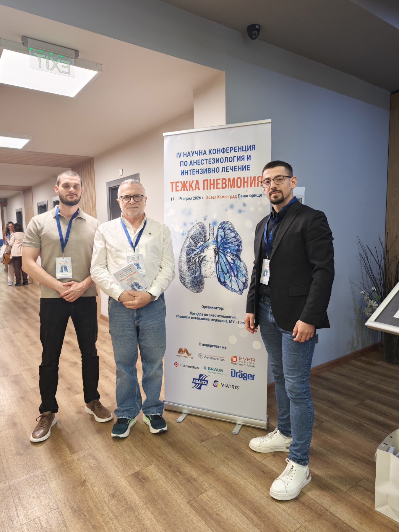 Проф. Вилиян Платиканов, началник на Клиниката по анестезиология и интензивно лечение, подчерта, че пневмонията остава водещо усложнение при хирургични интервенции и сепсис. По време на конференцията той представи доклад за стратегиите за превенция и защита в интензивните сектори.
