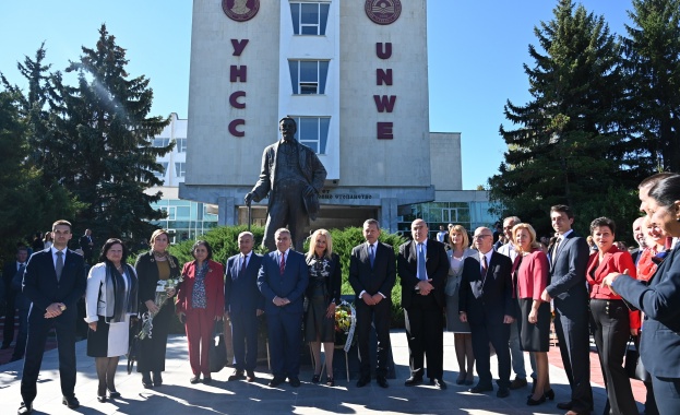 След тържественото откриване бяха поднесени цветя пред паметника на основателя и първи ректор на УНСС проф. Стефан Бобчев.