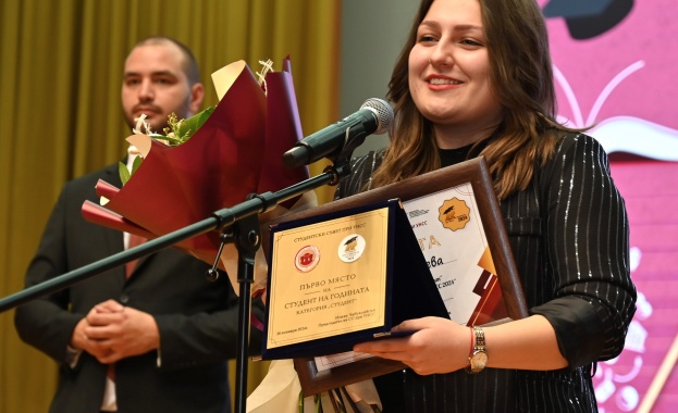 /КРОСС/ На официална церемония в аула „Максима" бяха наградени победителите в двадесет и първото издание на конкурса „Студент на годината", организиран от Студентския съвет при УНСС под патронажа на ректора проф. д-р Димитър Димитров.
