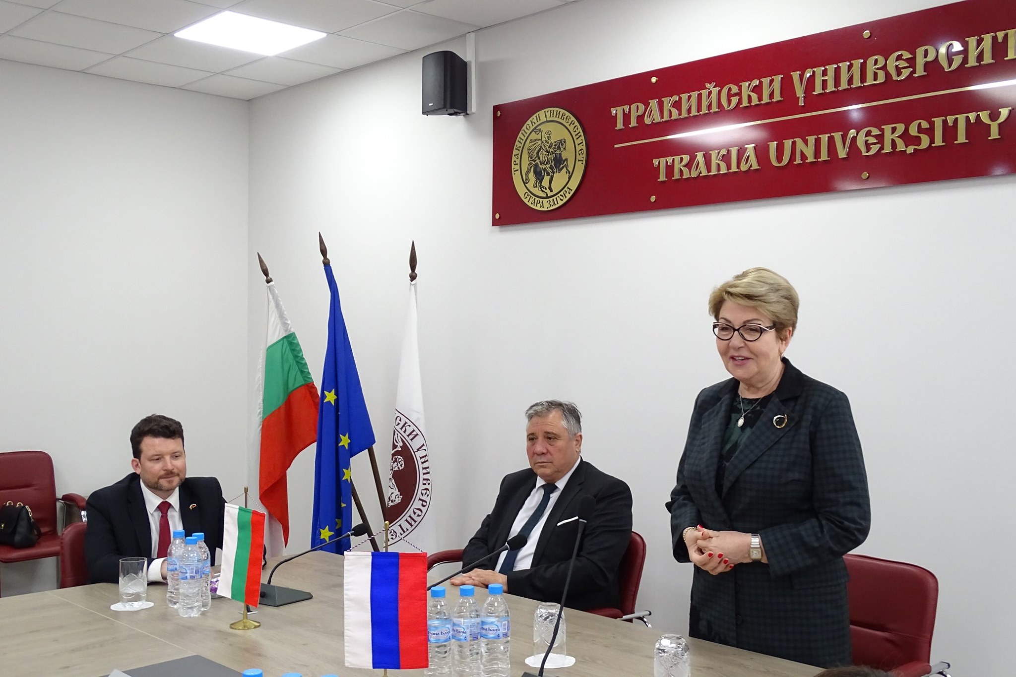 В Тракийския Университет посланик Митрофанова се срещна с ректора Добри Ярков и професорско-преподавателския състав. На срещата бяха обсъдени перспективите за разширяването на научно сътрудничество и обмен на студенти и докторанти между руски и български вузове.
