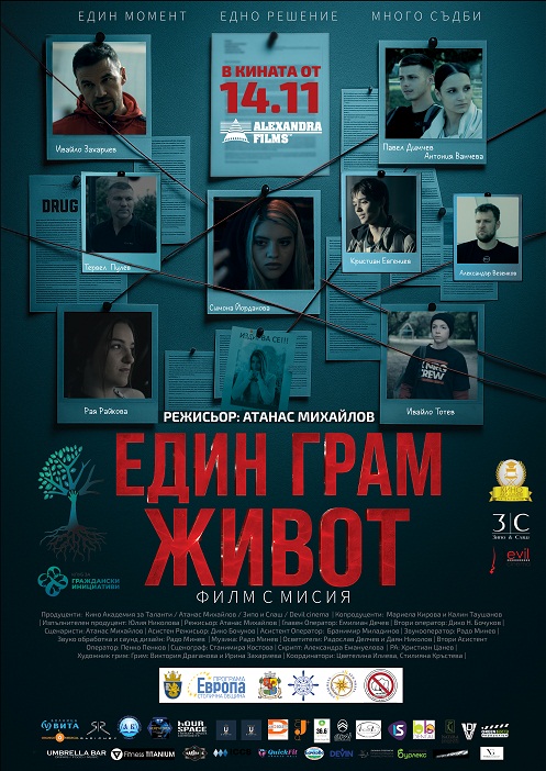 Новият филм на режисьора Атанас Михайлов - „Един грам живот" (продуценти: Атанас Михайлов, Кино академия за таланти, Devil Cinema, Зипо и Слаш) насочва светлината на прожекторите към един от най-наболелите проблеми в съвременното общество - употребата на наркотични вещества. Истинските събития, които представя, разкриват дълбоките лични, семейни и социални последствия от дрогата и засягат дълбоко връзката дете - родител, родител - дете. „Един грам живот" ще е в кината в цялата страна от 14 ноември. В ролите ще видим Ивайло Захариев, Калоян М. Патерков, Тервел Пулев, Доби Главинчева, Симона Йорданова, Павел Димчев, Лео Панов, Александър Везенков - баскетболист номер 1 в България и Европа.