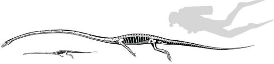 /КРОСС/ Шестметрово животно от триас с шия, дълга 3 метра, озадачава учените от откриването му през 1952 г. насам. Палеонтолозите не са сигурни дали животното с необичайно дълъг врат живее на сушата или във водата и дали подобно изглеждащи екземпляри с дължина до 1,2 метра са свързани с гигантите или са различен вид. Сега ново изследване, публикувано в Current Biology, успява да разгадае мистерията с нови доказателства, получени от компютър томографско сканиране на фосилите.